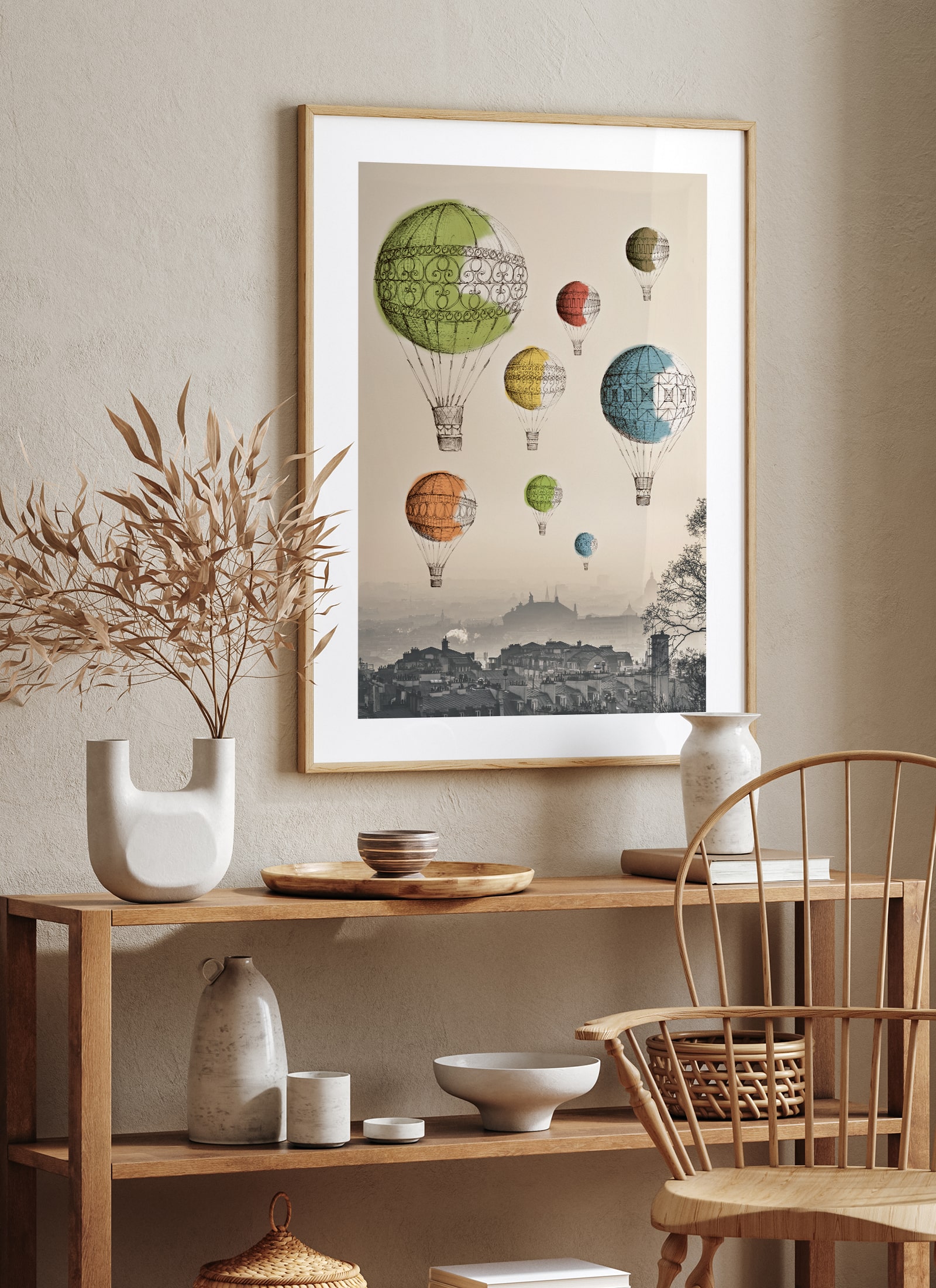 Plakat Balony nad miastem bez ramy.