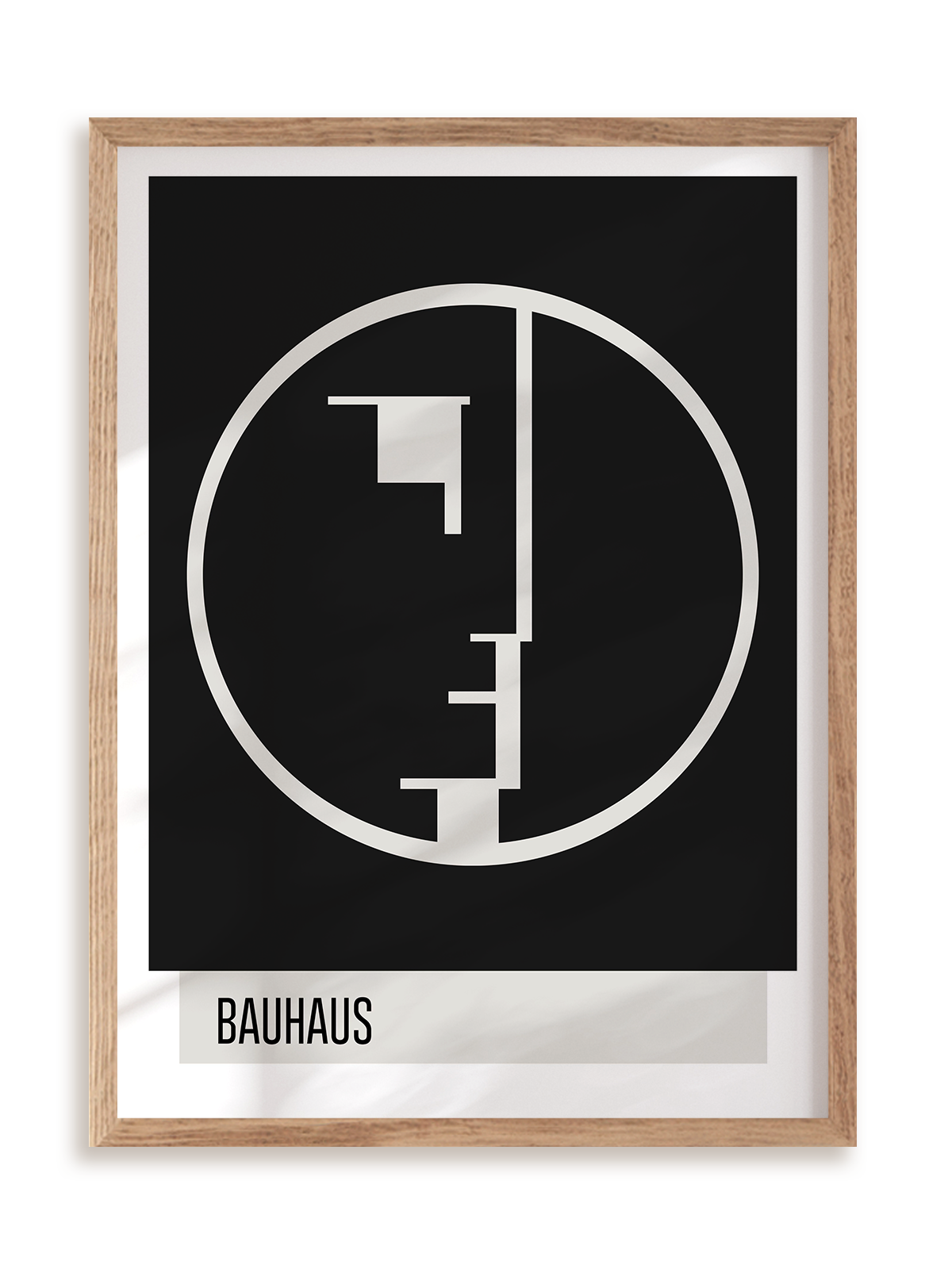 Plakat jest oprawiony w ramkę drewnianą o prostym, eleganckim profilu.