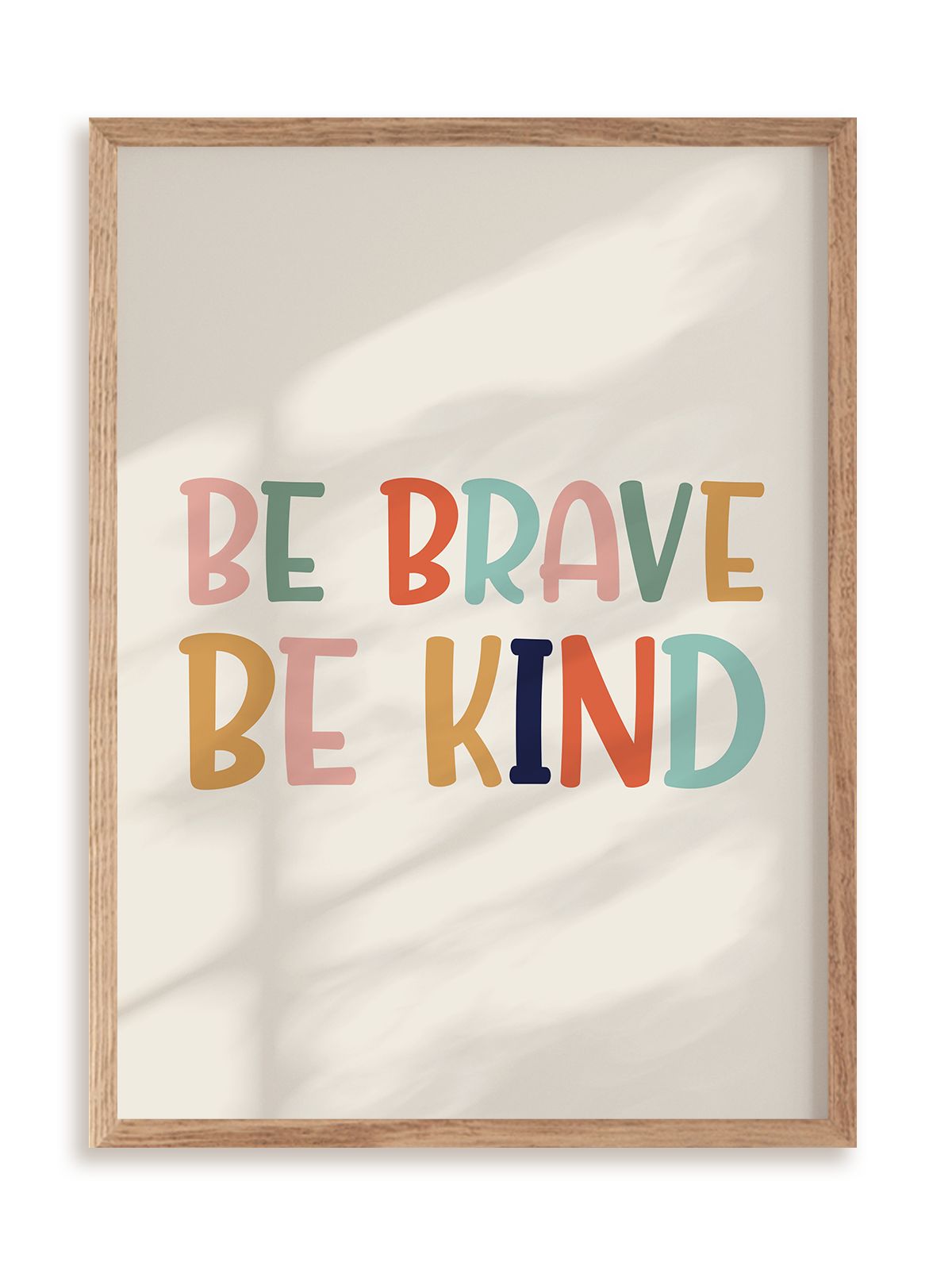 Plakat Be brave be kind w ramie drewnianej.
