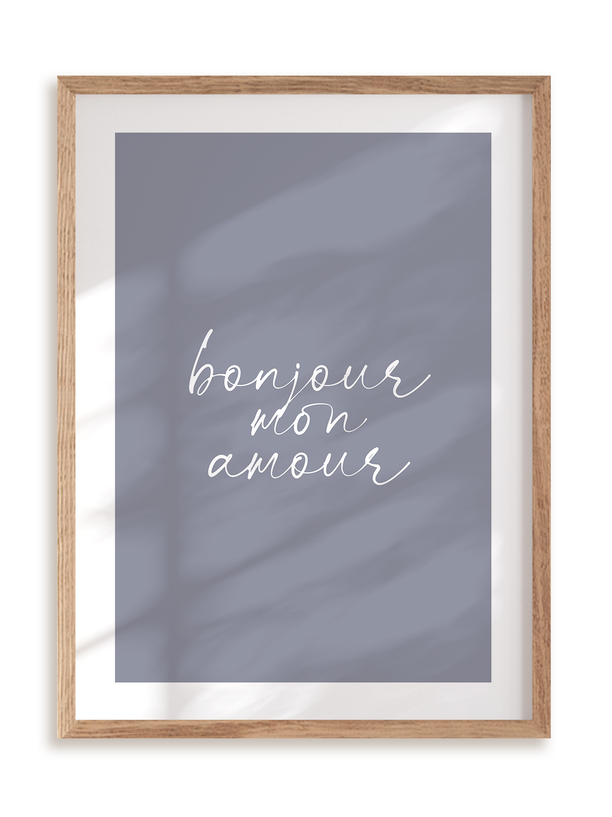 Plakat jest oprawiony w ramkę drewnianą o prostym, eleganckim profilu.