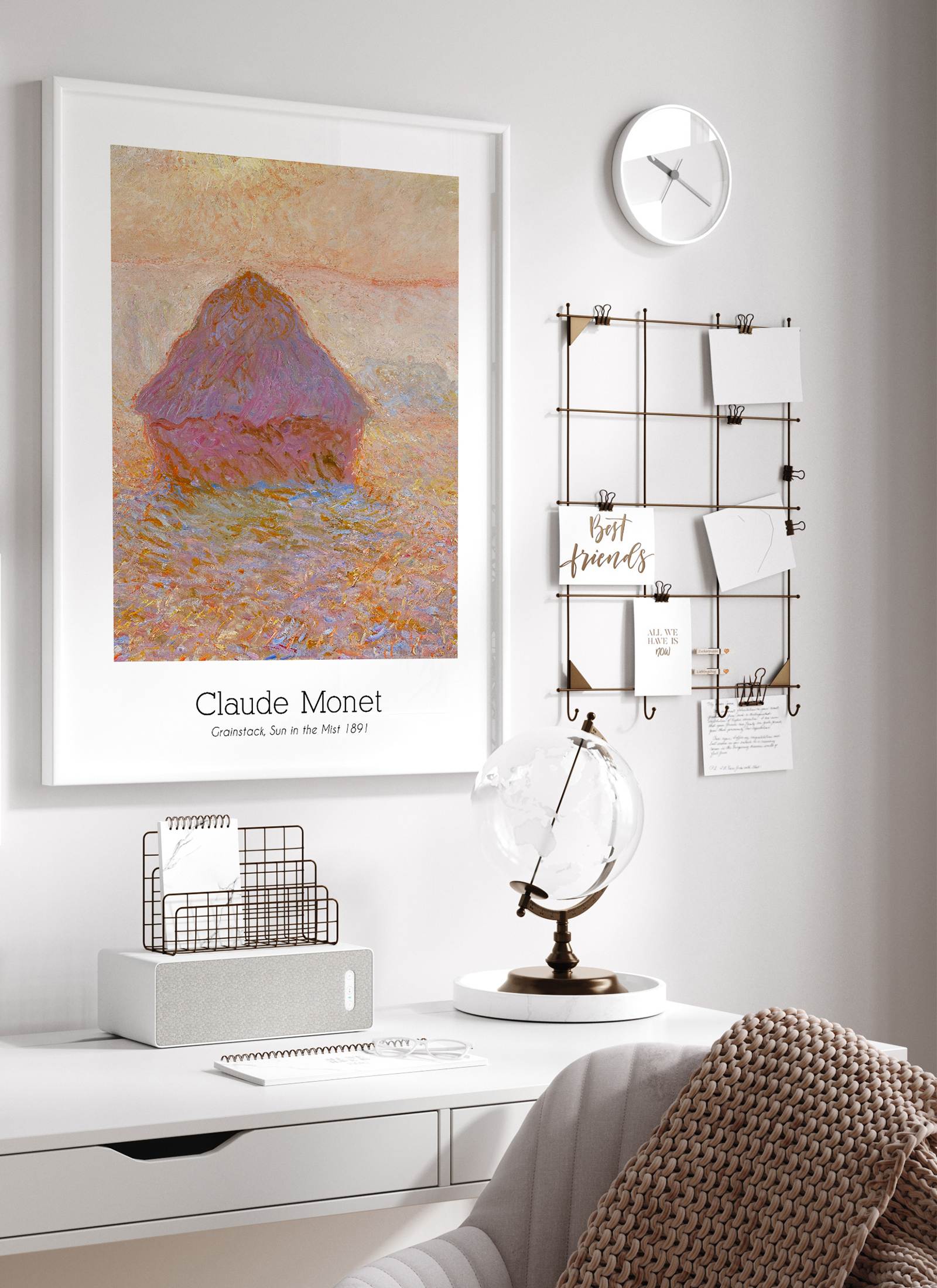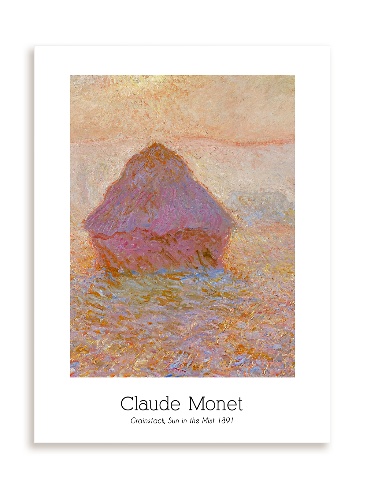 Plakat Claude Monet – Grainstack, Sun in the Mist (1891) bez ramy.