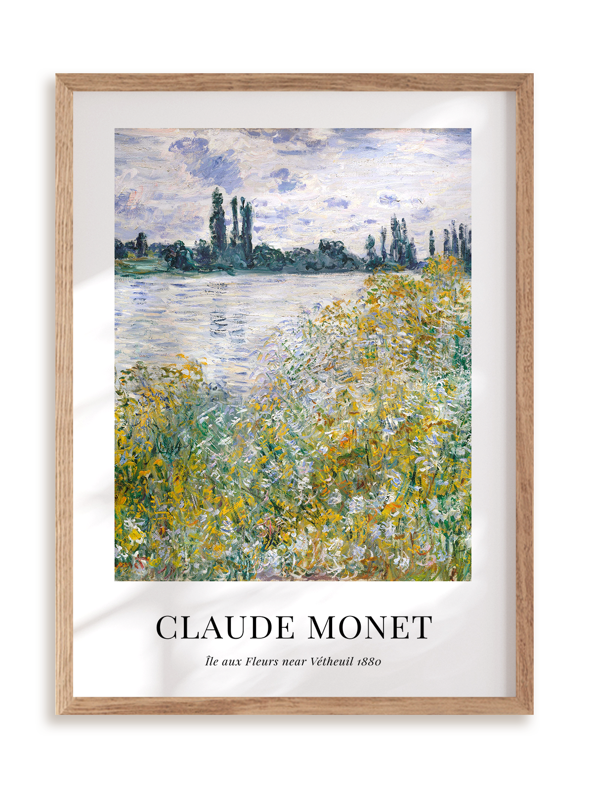 Plakat Claude Monet – Île aux Fleurs near Vétheuil (1880) w ramie drewnianej.