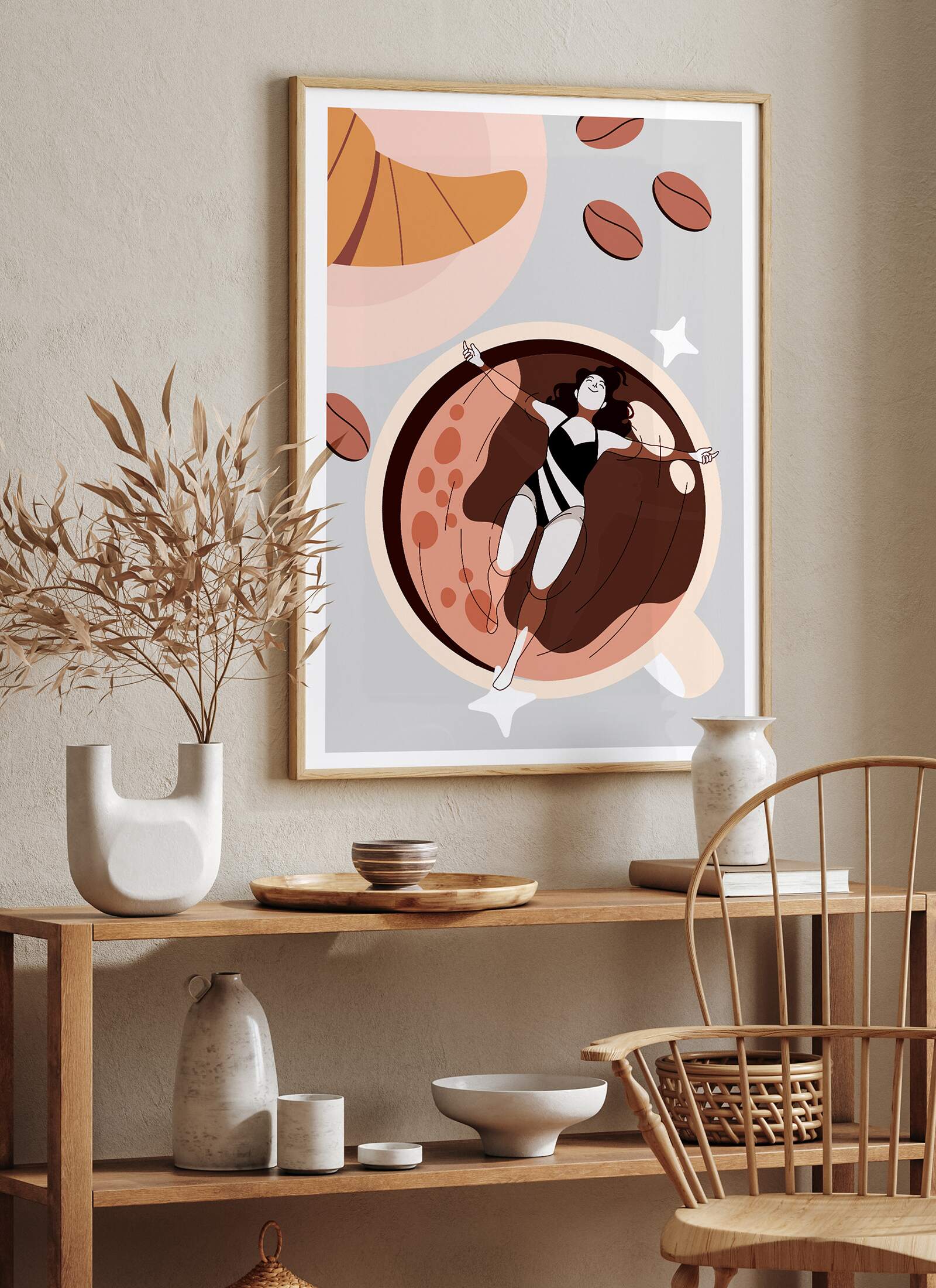 Plakat stworzony z pasji do sztuki, który przyciąga uwagę niebanalnym wzornictwem. Wykonany z dbałością o szczegóły, idealny do kreatywnych przestrzeni i nowoczesnych aranżacji.