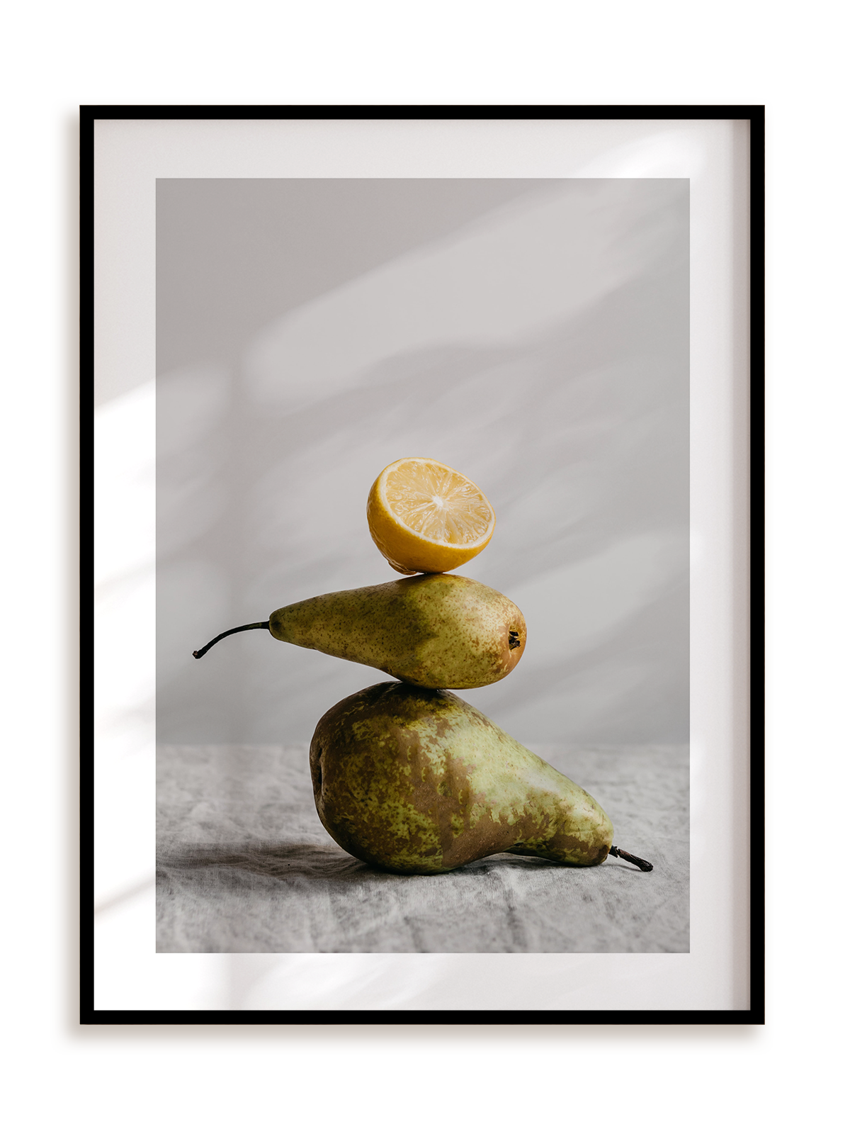 Plakat Cytryna i dwie gruszki w ramie aluminiowej.