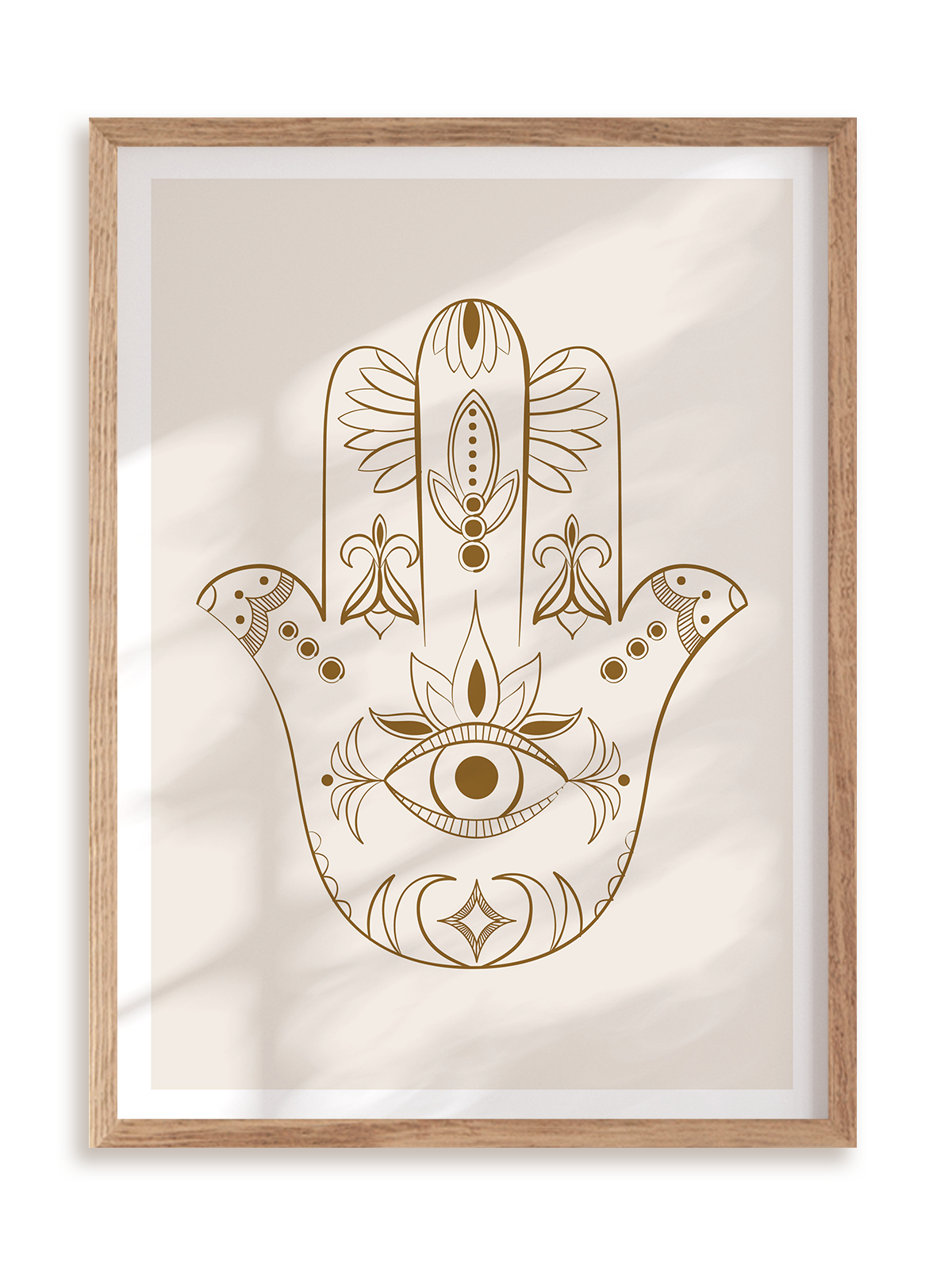 Plakat Hamsa w ramie dębowej. Elegancka dekoracja do Twojego wnętrza.