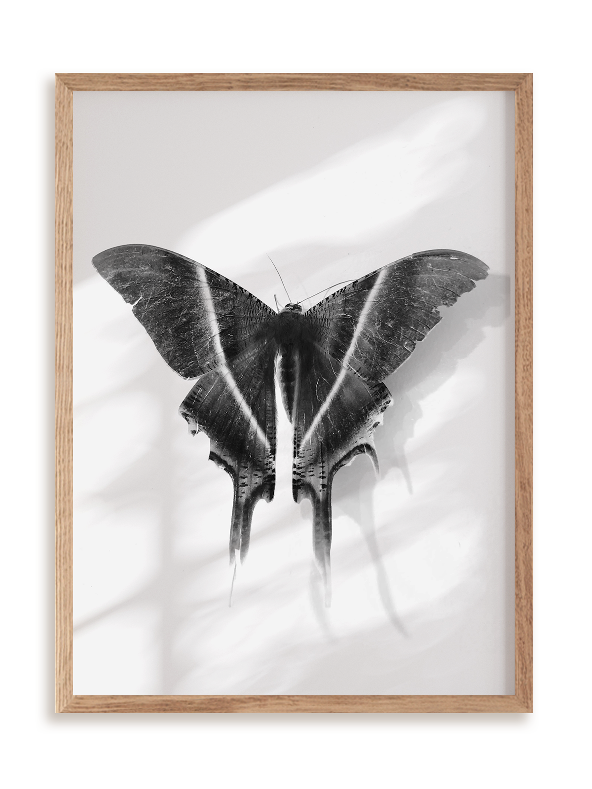 Plakat jest oprawiony w ramkę drewnianą o prostym, eleganckim profilu.