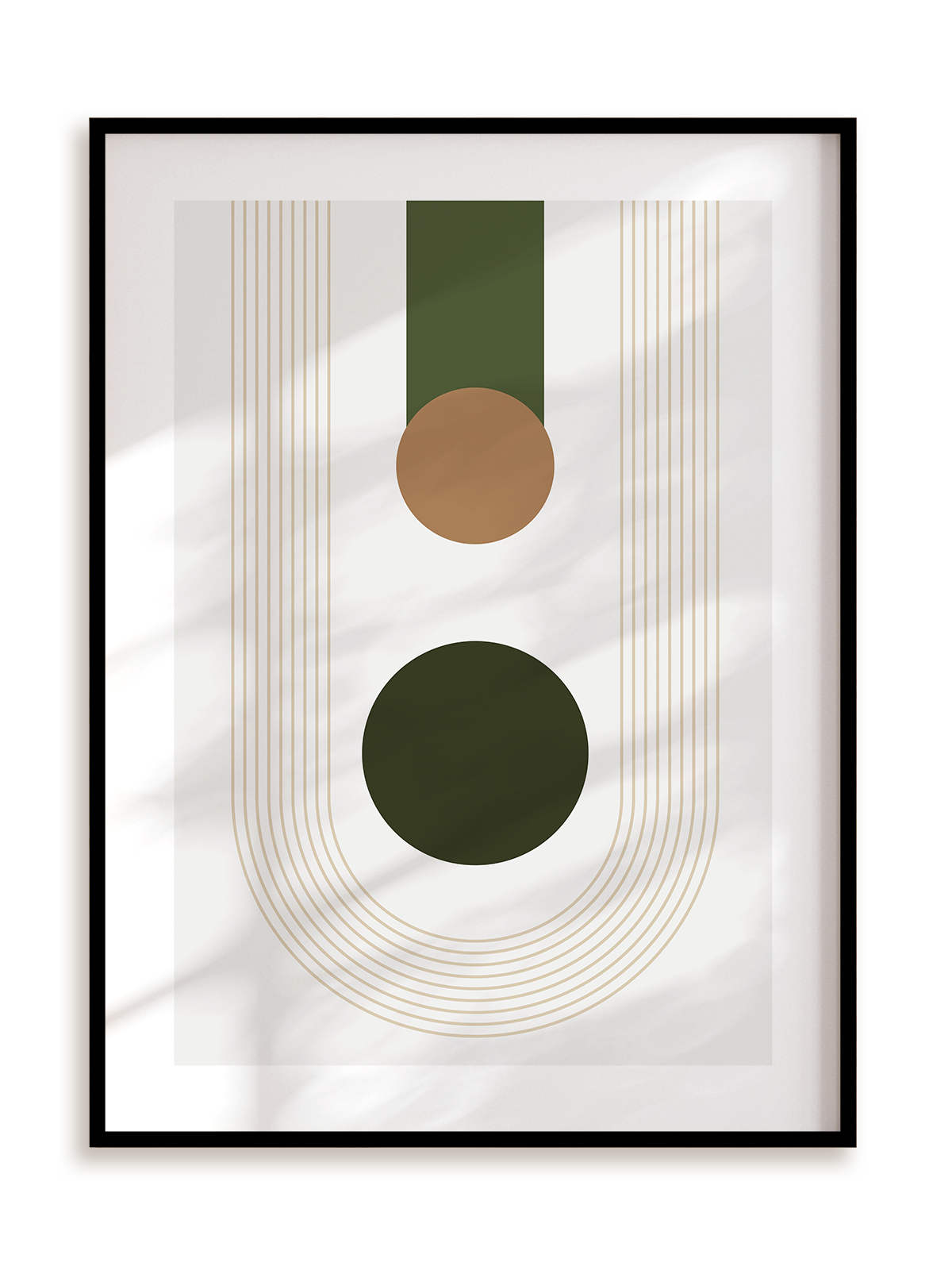 Plakat jest oprawiony w ramkę metalową o prostym, eleganckim profilu.