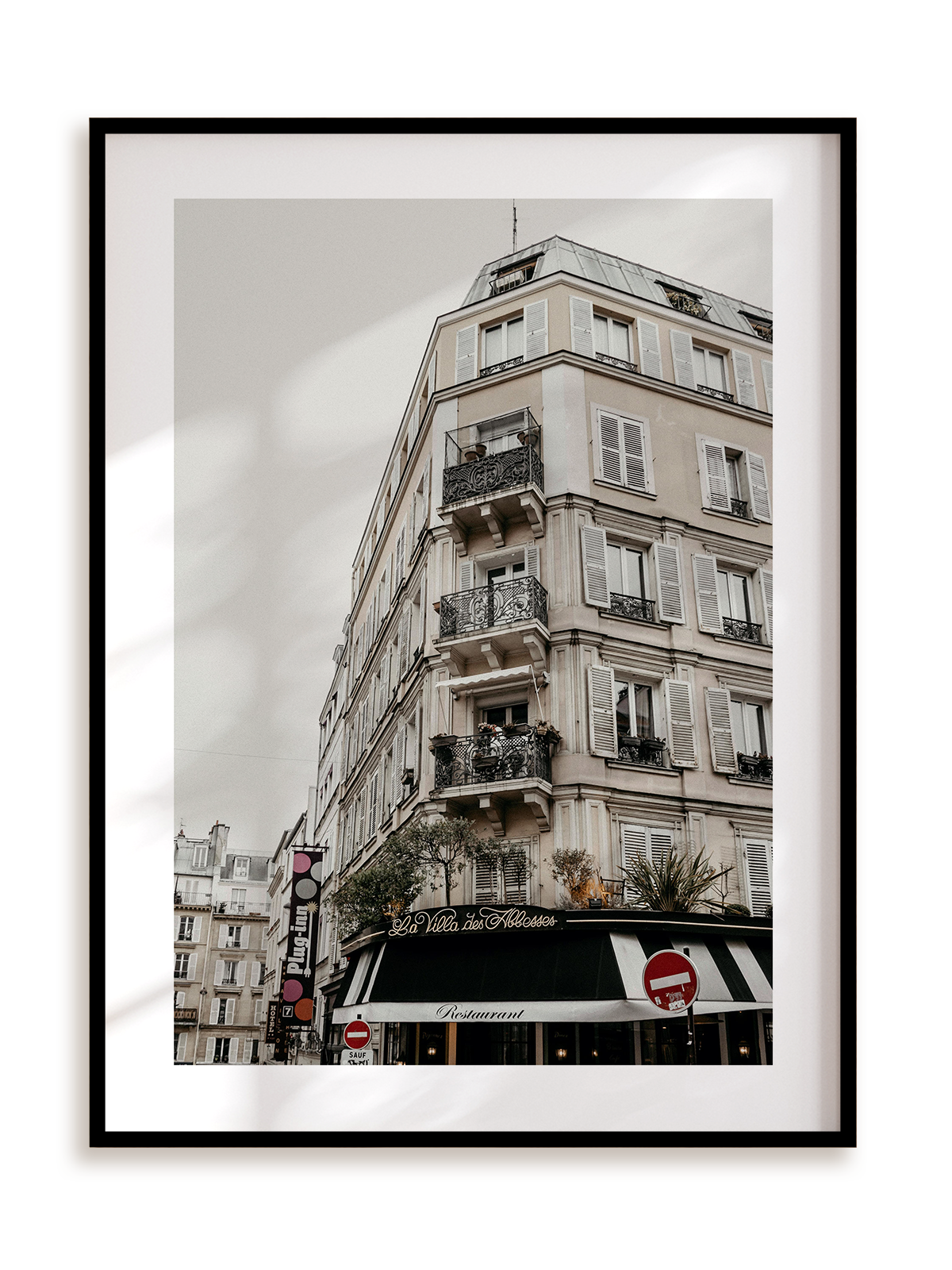 Plakat jest oprawiony w ramkę metalową o prostym, eleganckim profilu.