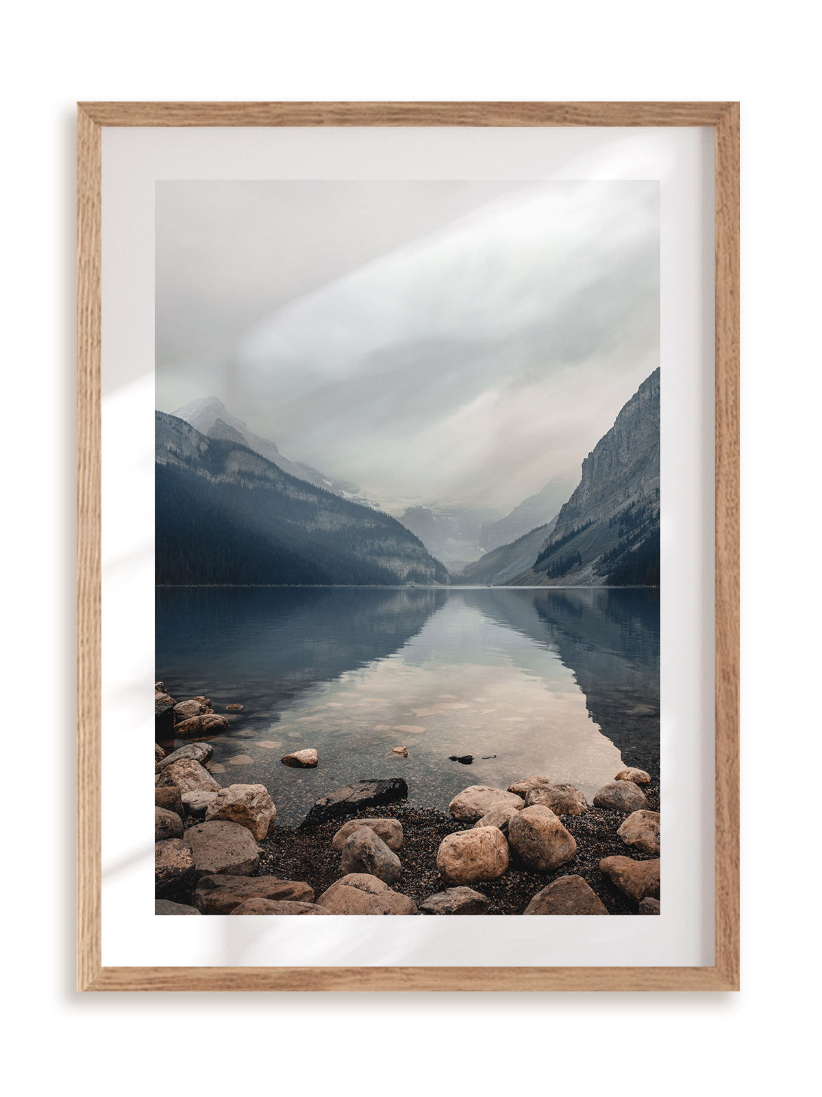Plakat Nad fiordem w ramie drewnianej.