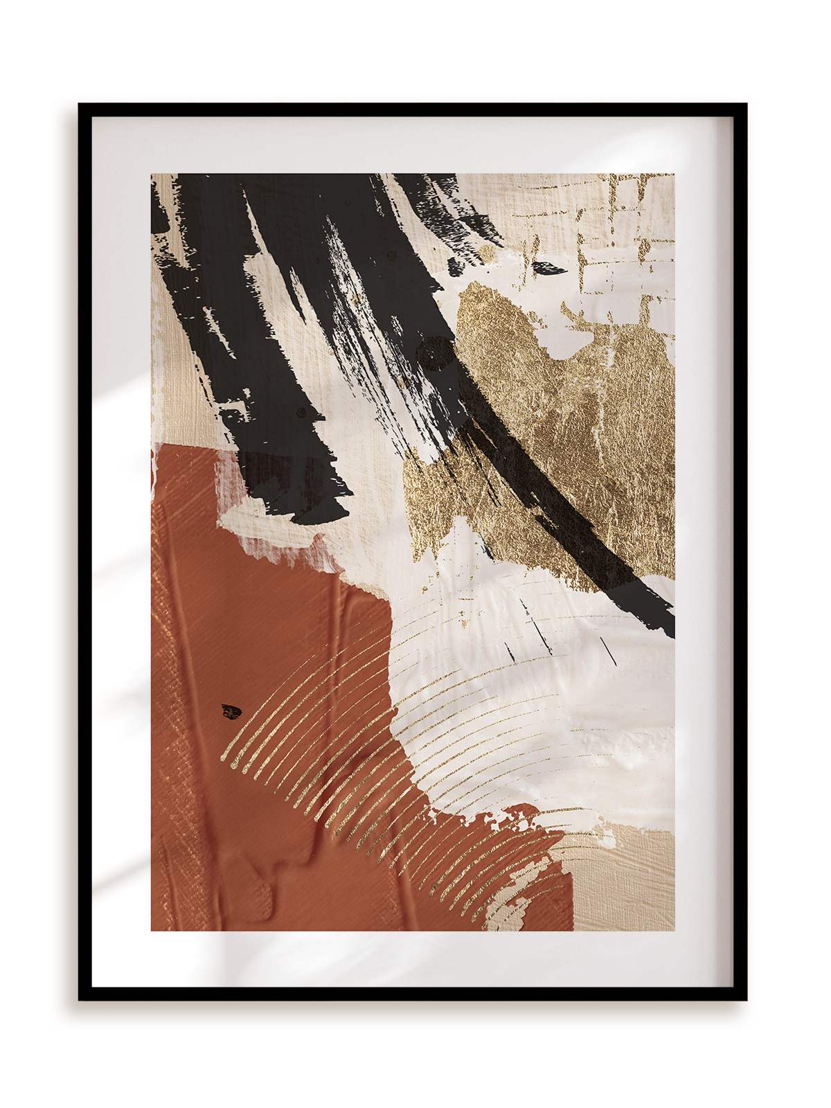 Plakat jest oprawiony w ramkę metalową o prostym, eleganckim profilu.