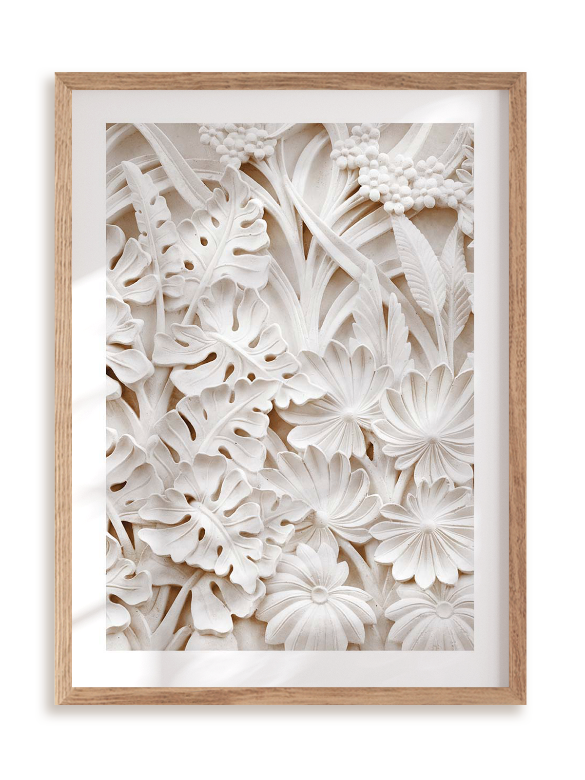 Plakat jest oprawiony w ramkę drewnianą o prostym, eleganckim profilu.