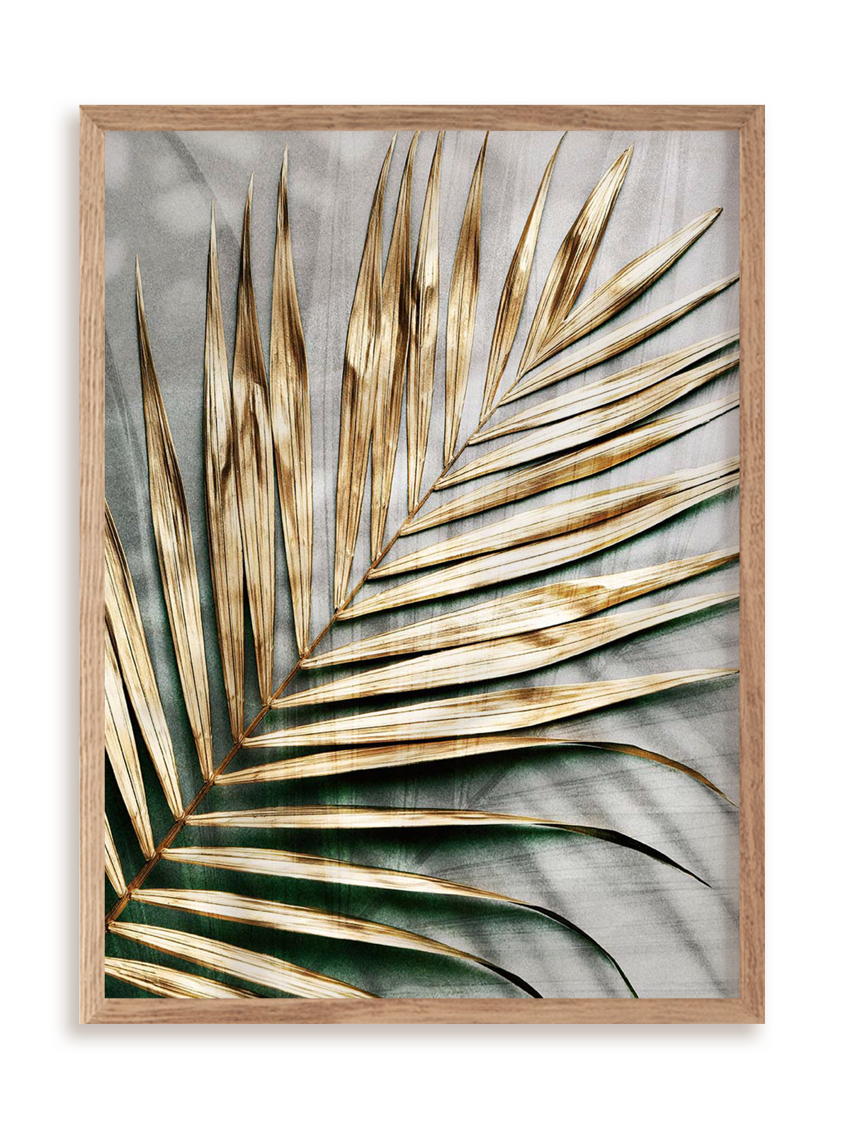 Plakat jest oprawiony w ramkę drewnianą o prostym, eleganckim profilu.
