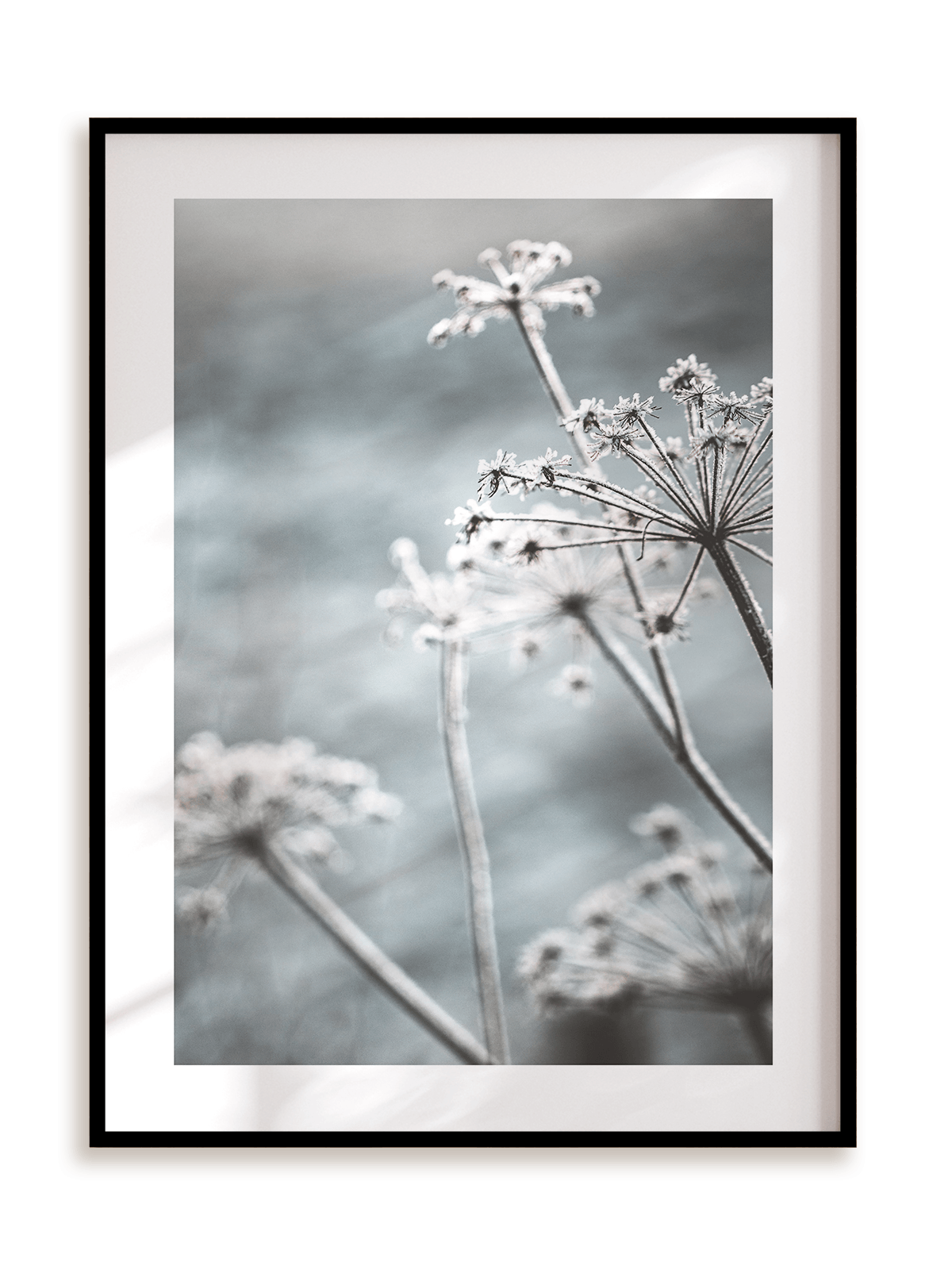 Plakat jest oprawiony w ramkę metalową o prostym, eleganckim profilu.