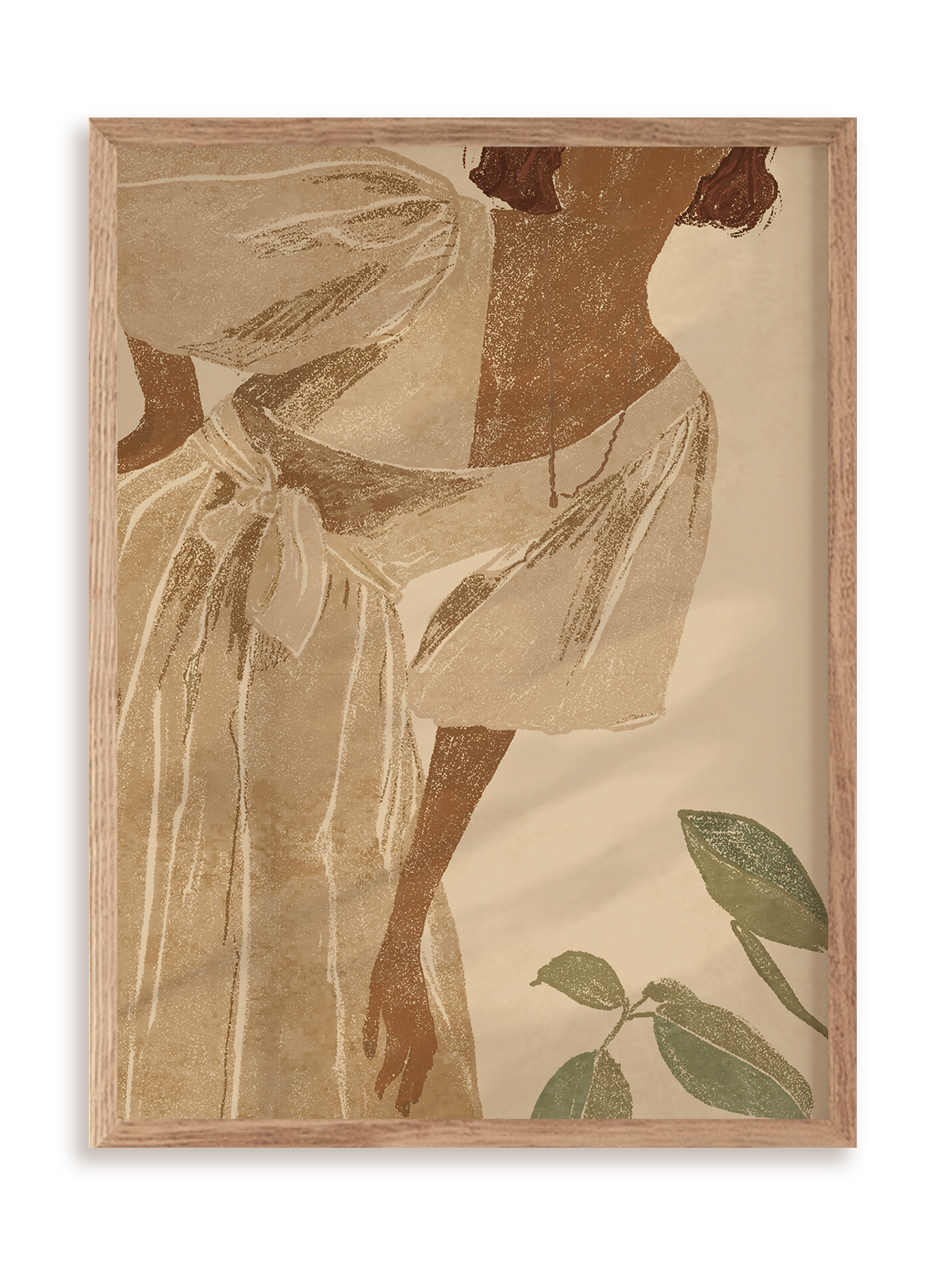 Plakat jest oprawiony w ramkę drewnianą o prostym, eleganckim profilu.
