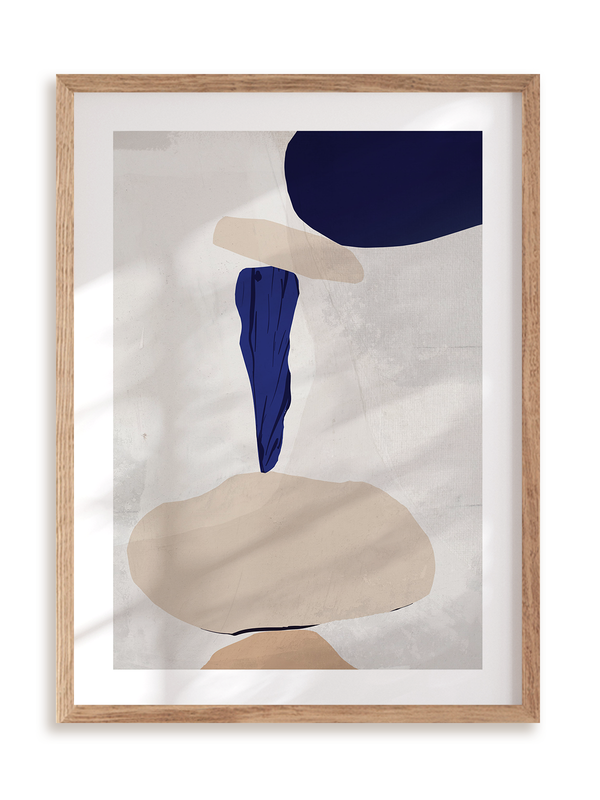 Plakat jest oprawiony w ramkę drewnianą o prostym, eleganckim profilu.