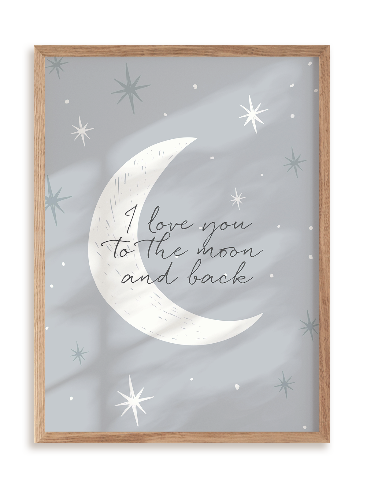 Plakat To the moon and back w ramie drewnianej.