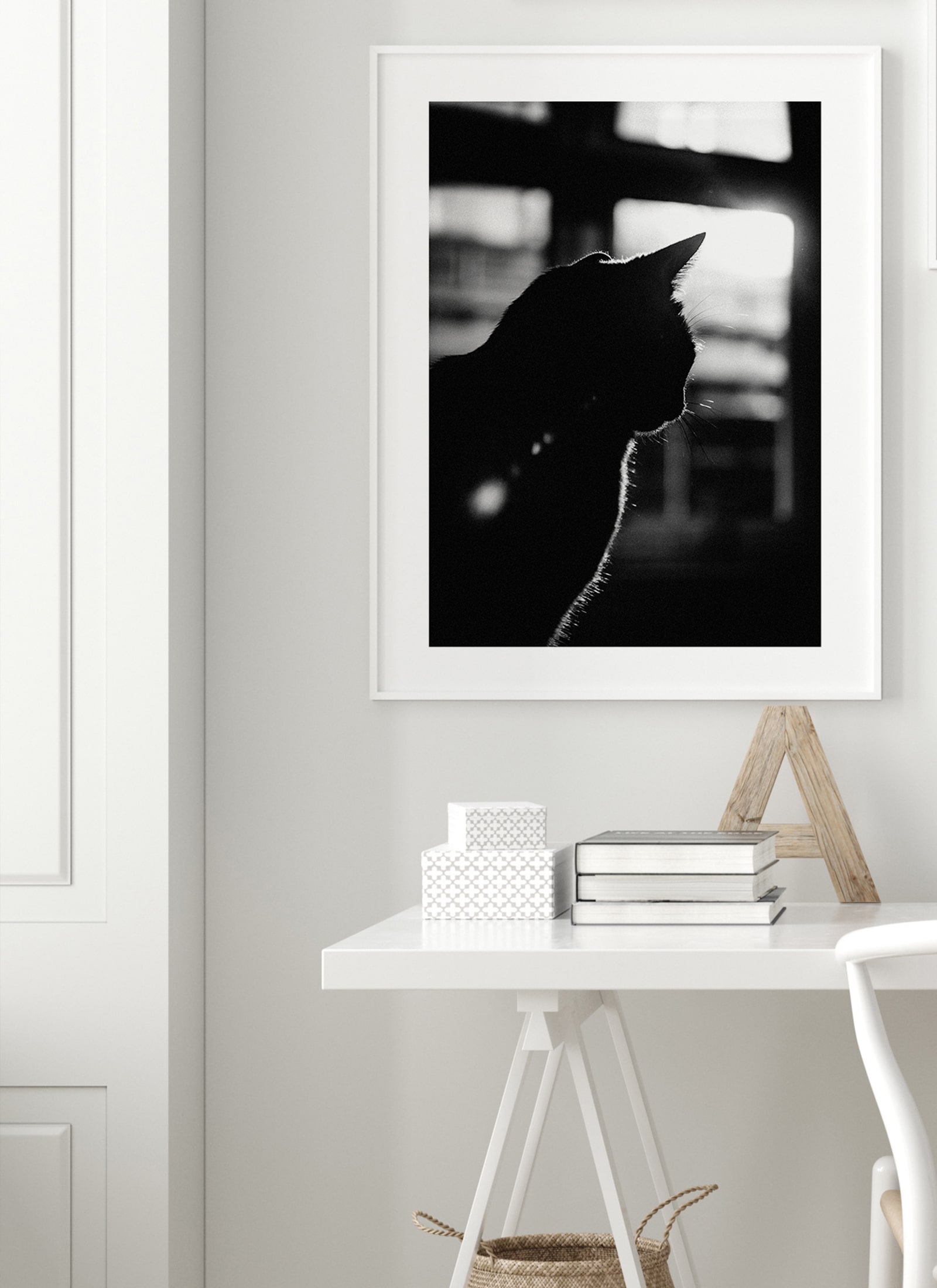 Plakat w minimalistycznym stylu, który doskonale wkomponuje się w nowoczesne i loftowe wnętrza. Prostota formy i ponadczasowy kontrast sprawiają, że plakat czarno-biały pasuje do każdej aranżacji.