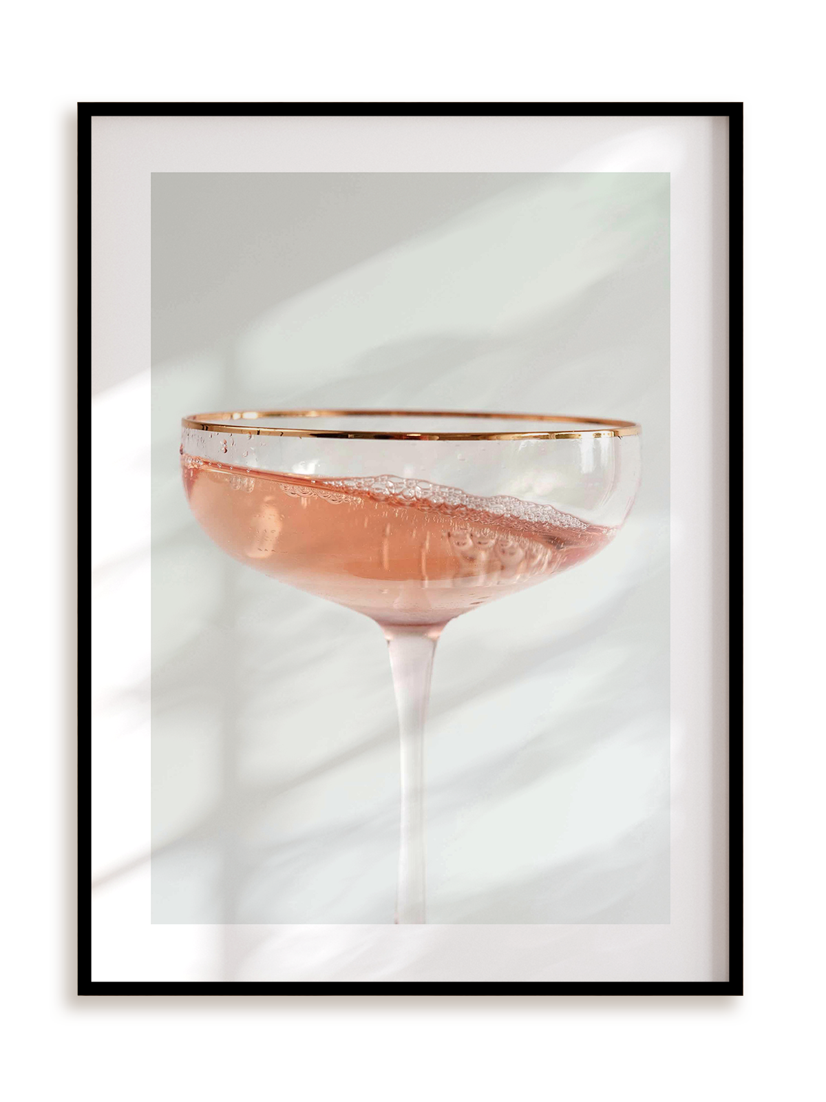 Plakat jest oprawiony w ramkę metalową o prostym, eleganckim profilu.