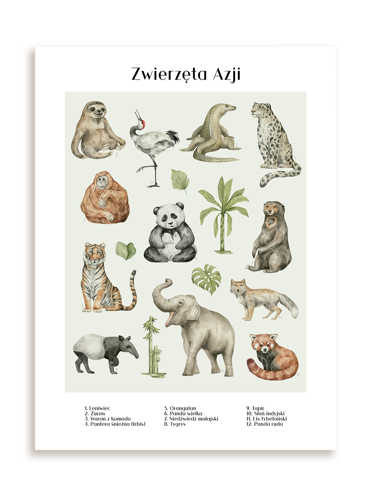 Plakat Zwierzęta w Azji bez ramy. Elegancka dekoracja do Twojego wnętrza.